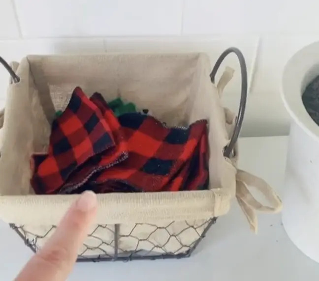 Anne devam etti: “Bu sepete temiz mendil – çoğunlukla eski Noel pijamalarından kesilmiş bez koyuyorum.