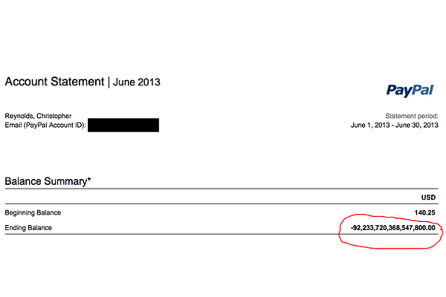 56 yaşındaki Chris Reynolds, Temmuz 2013’te bir gün Paypal hesabını açtı ve hesabına 92 katrilyon $ – tam olarak 92.233.720.368.547.800 $ ( yatırıldığını gördü ) kısaca onu en zengin adam ve Dünya’da yürüyen tek katrilyoner yaptı.