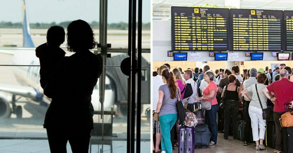 Ancak pasaport kontrolünden geçerken, görünüşe göre çocuklarını bebek arabasında bırakıp uçağa onlarsız binmeye çalıştılar.